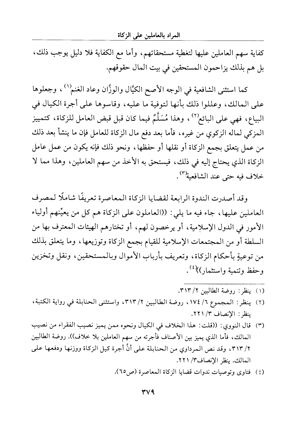 (¬3) قال النووي: "قلت: هذا الخلاف في الكيال ونحوه ممن يميز نصيب الفقراء من نصيب المالك، فأما الذي يميز بين الأصناف فأجرته من سهم العاملين بلا خلاف". روضة الطالبين 2/ 313، وقد نص المرداوي من الحنابلة على أنَّ أجرة كيل الزكاة ووزنها ودفعها على المالك. ينظر الإنصاف 3/ 221.