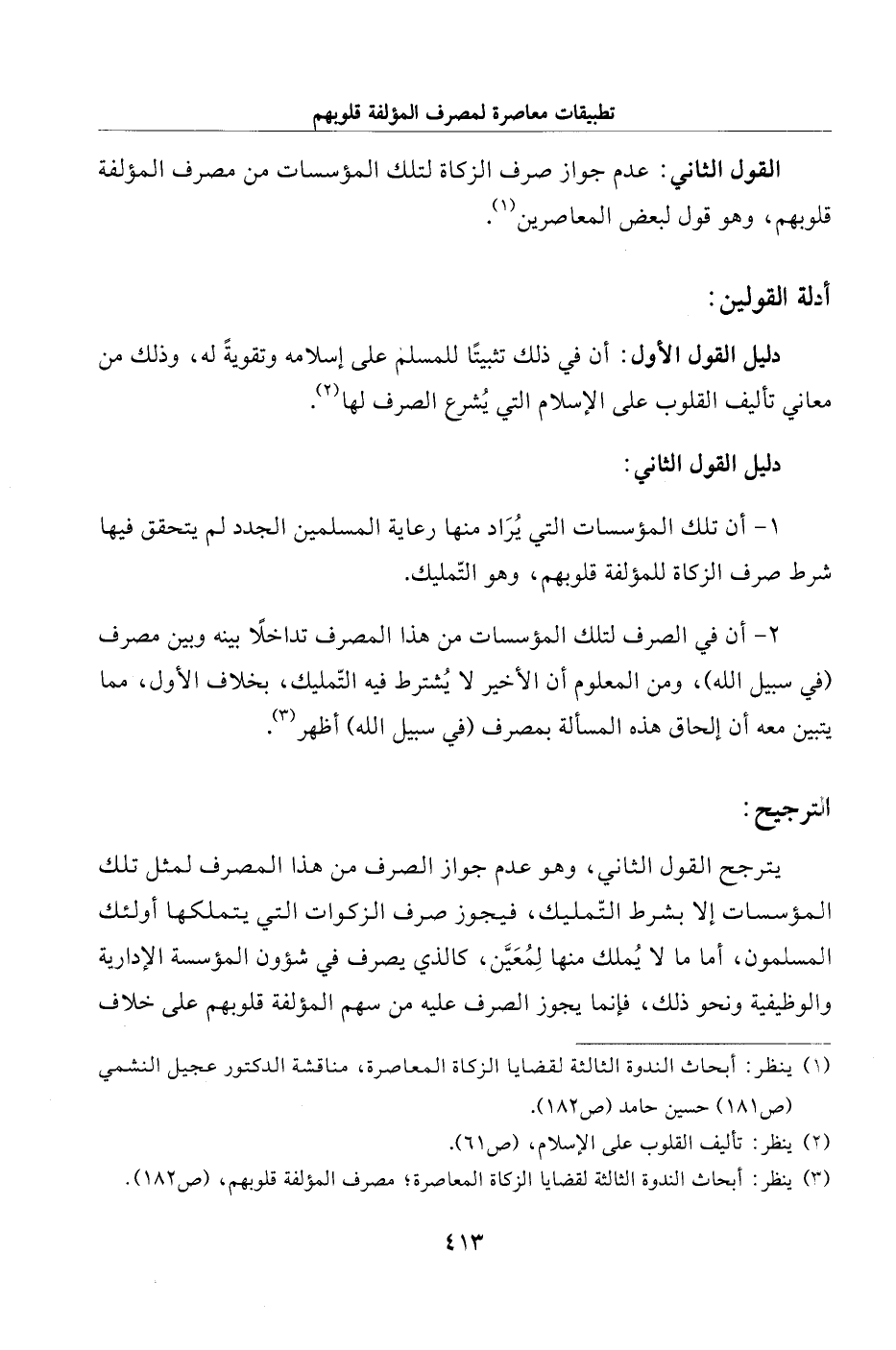 (¬3) ينظر: أبحاث الندوة الثالثة لقضايا الزكاة المعاصرة؛ مصرف المؤلفة قلوبهم، (ص 182).