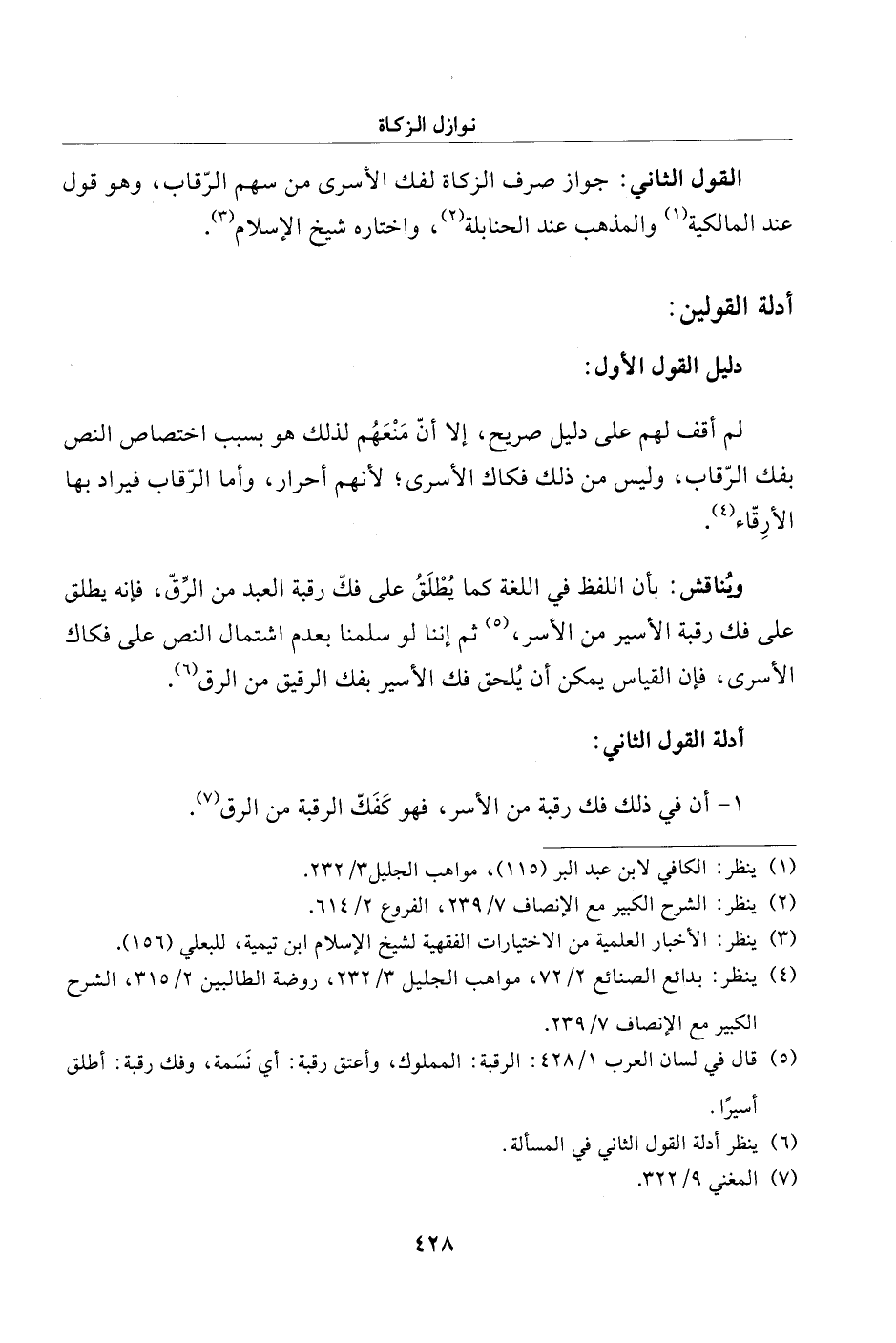 ويُناقش: بأن اللفظ في اللغة كما يُطلَقُ على فكّ رقبة العبد من الرِّقّ، فإنه يطلق على فك رقبة الأسير من الأسر، (¬5) ثم إننا لو سلمنا بعدم اشتمال النص على فكاك الأسرى، فإن القياس يمكن أن يُلحق فك الأسير بفك الرقيق من الرق (¬6).