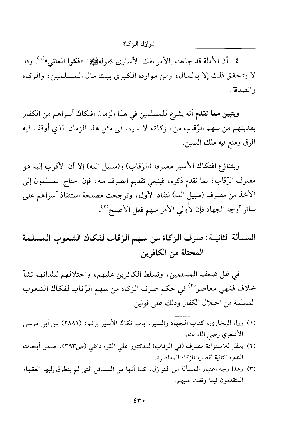 (¬2) ينظر للاستزادة مصرف (في الرقاب) للدكتور علي القره داغي (ص 393)، ضمن أبحاث الندوة الثانية لقضايا الزكاة المعاصرة.