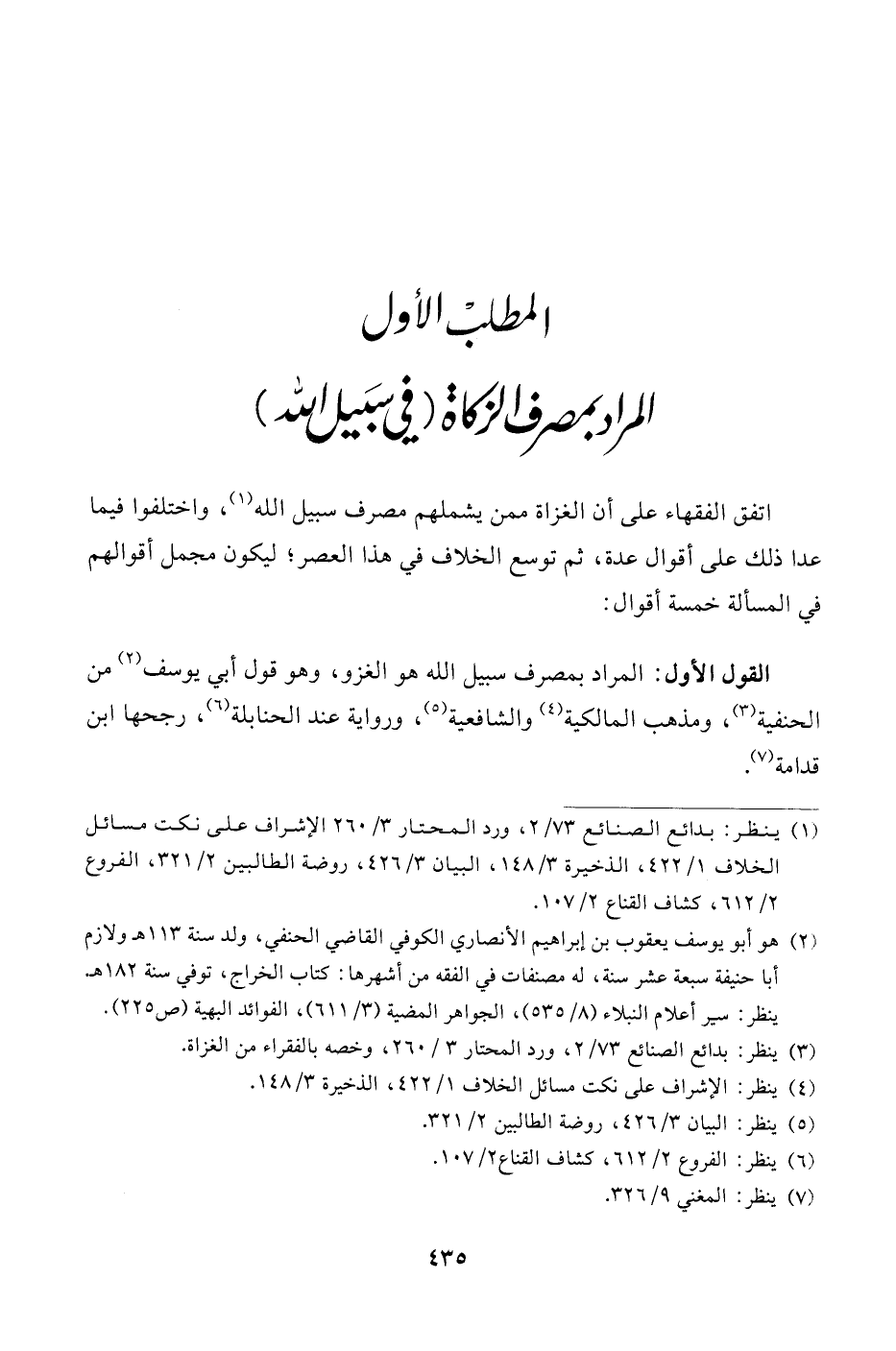 المطلب الأول المراد بمصرف الزكاة (في سبيل الله)