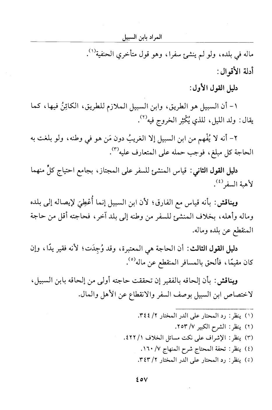 1 - أن السبيل هو الطريق، وابن السبيل الملازم للطريق، الكائِنُ فيها، كما يقال: ولد الليل، للذي يُكْثِر الخروج فيه (¬2).