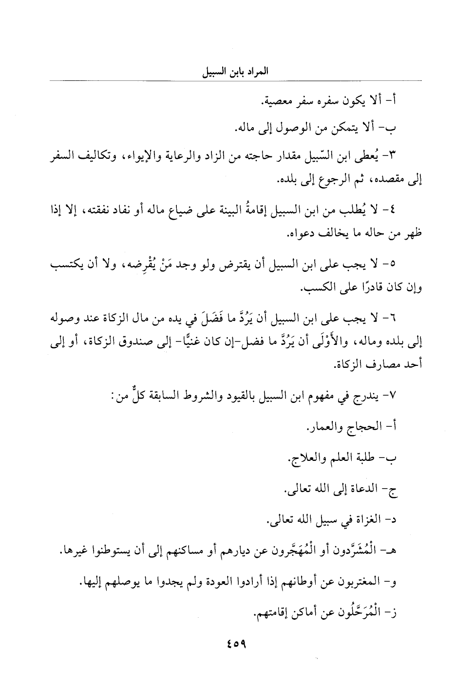 7 - يندرج في مفهوم ابن السبيل بالقيود والشروط السابقة كلٌّ من: