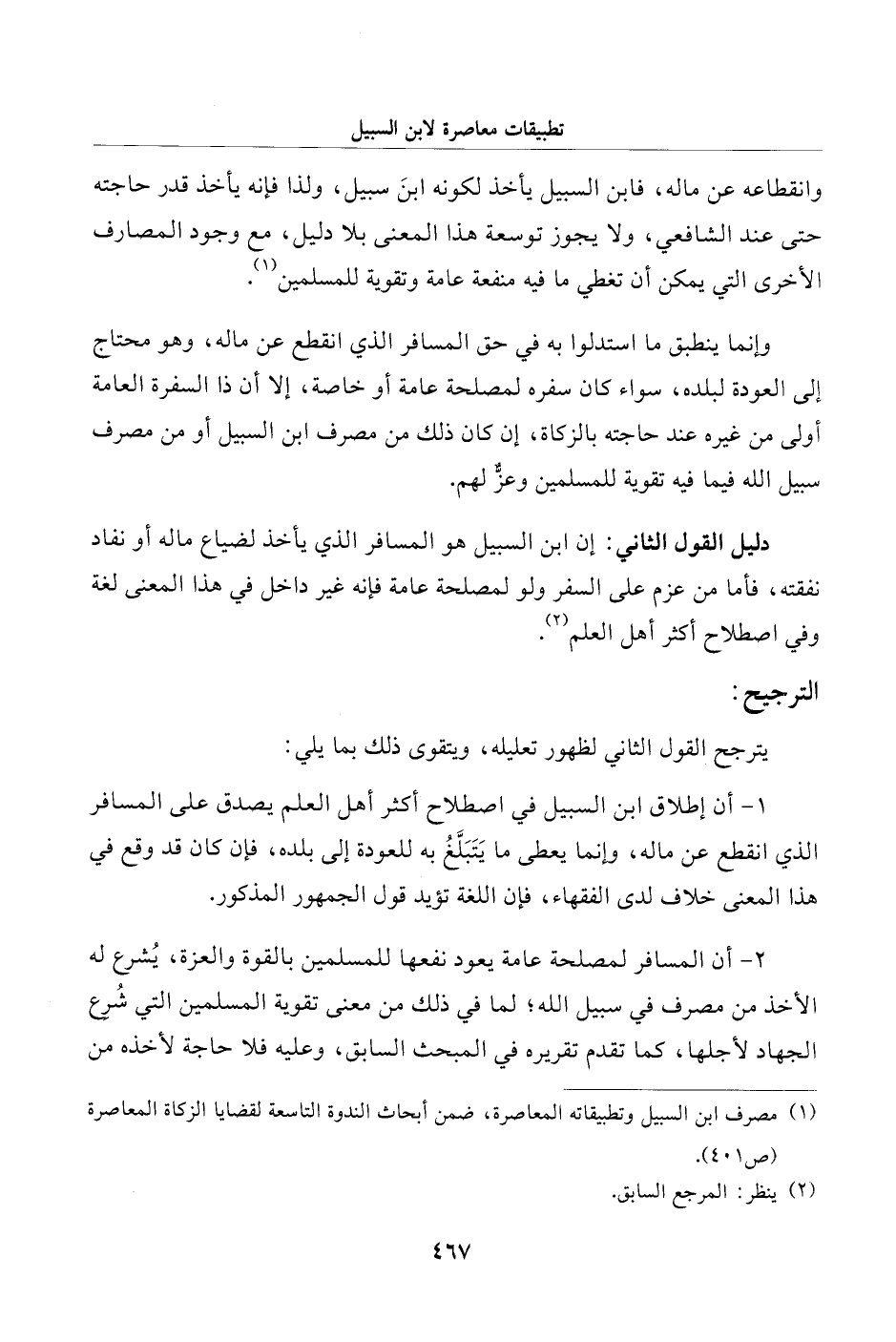 (¬1) مصرف ابن السبيل وتطبيقاته المعاصرة، ضمن أبحاث الندوة التاسعة لقضايا الزكاة المعاصرة (ص 401).