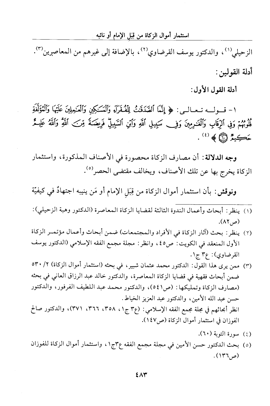(¬5) بحث الدكتور حسن الأمين في مجلة مجمع الفقه ع 3 ج 1، واستثمار أموال الزكاة للفوزان (ص 136).