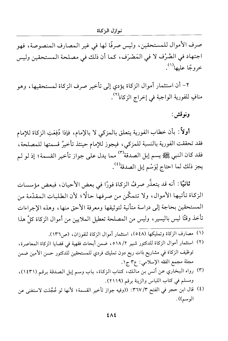(¬1) مصارف الزكاة وتمليكها (548)، استثمار أموال الزكاة للفوزان، (ص 136).