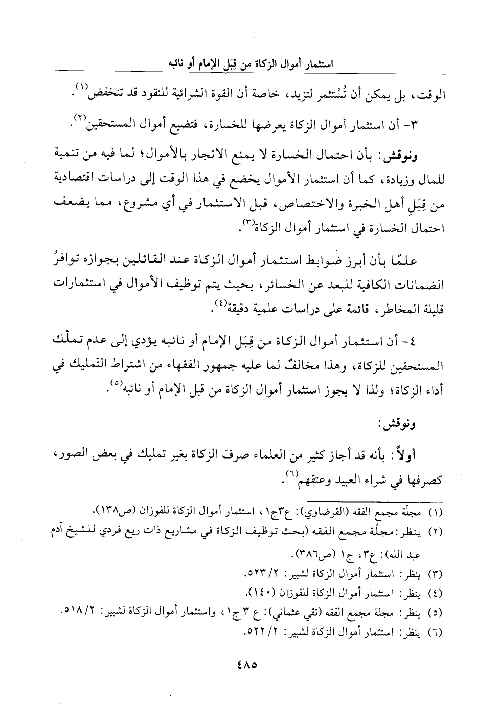 (¬1) مجلّة مجمع الفقه (القرضاوي): ع 3 ج 1، استثمار أموال الزكاة للفوزان (ص 138).