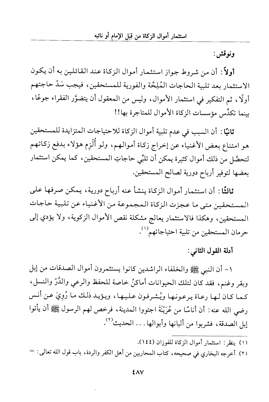 (¬1) ينظر: استثمار أموال الزكاة للفوزان (144).