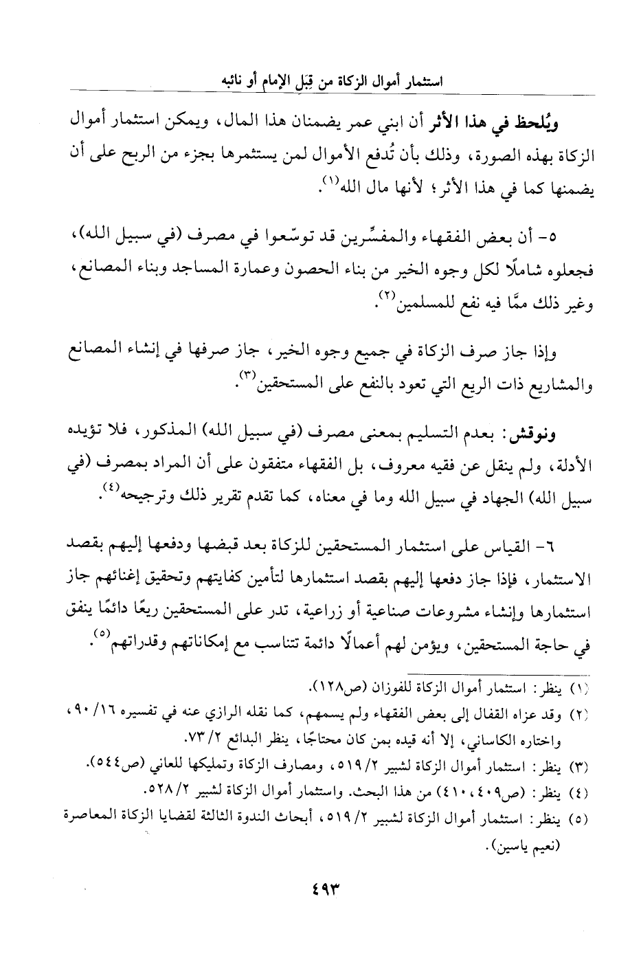 (¬5) ينظر: استثمار أموال الزكاة لشبير 2/ 519، أبحاث الندوة الثالثة لقضايا الزكاة المعاصرة (نعيم ياسين).