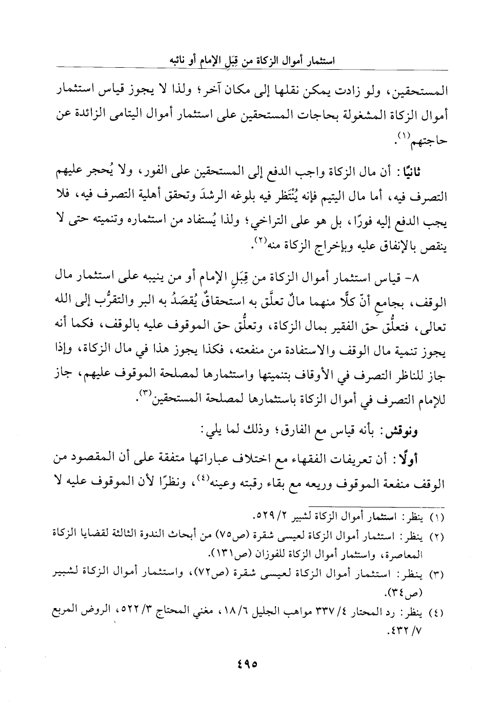 (¬2) ينظر: استثمار أموال الزكاة لعيسى شقرة (ص 7) من أبحاث الندوة الثالثة لقضايا الزكاة المعاصرة، واستثمار أموال الزكاة للفوزان (ص 131).