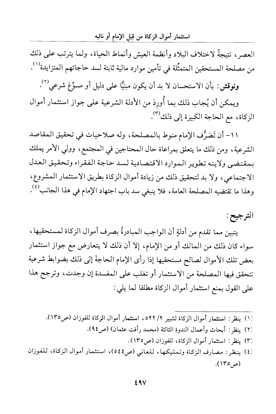 (¬4) ينظر: مصارف الزكاة وتمليكها، للعاني (ص 544)، استثمار أموال الزكاة، للفوزان (ص 135).