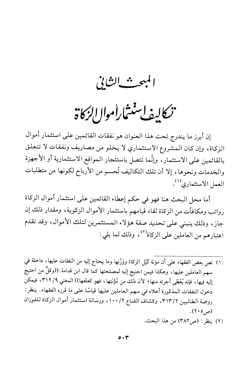 المبحث الثاني تكاليف استثمار أموال الزكاة