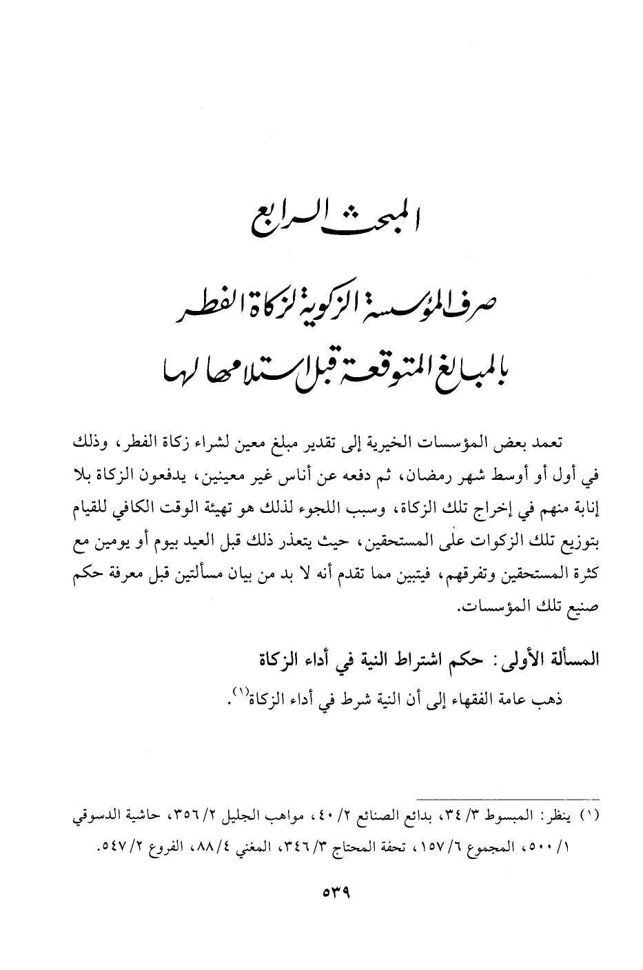 المبحث الرابع صرف المؤسسة الزكوية لزكاة الفطر بالمبالغ المتوقعة قبل استلامها لها