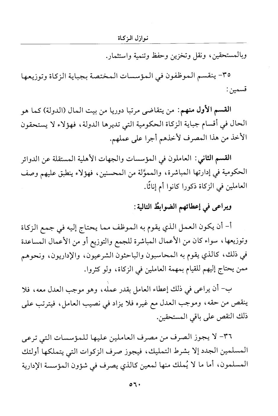 35 - ينقسم الموظفون في المؤسسات المختصة بجباية الزكاة وتوزيعها قسمين: