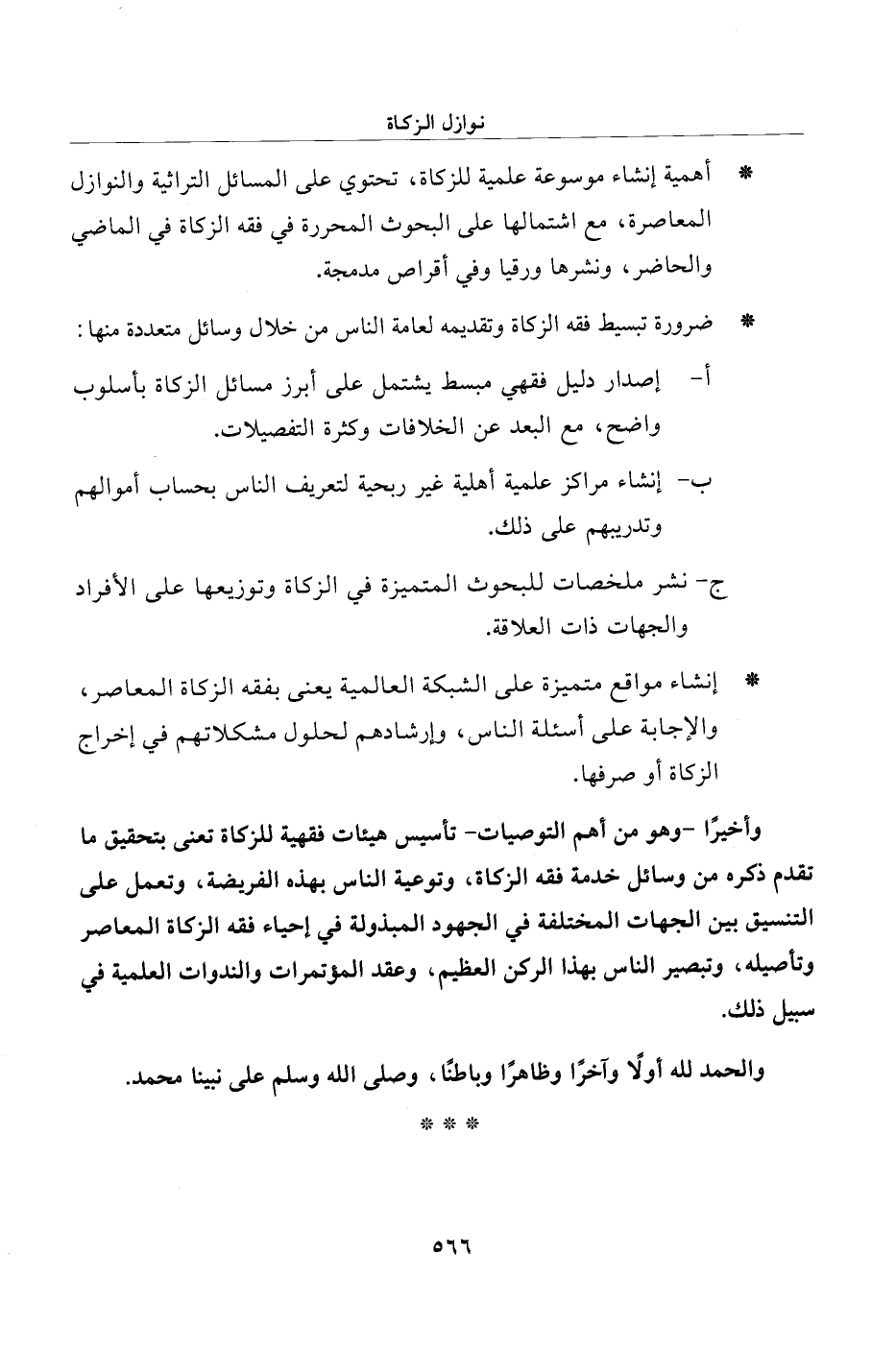 * أهمية إنشاء موسوعة علمية للزكاة، تحتوي على المسائل التراثية والنوازل المعاصرة، مع اشتمالها على البحوث المحررة في فقه الزكاة في الماضي والحاضر، ونشرها ورقيا وفي أقراص مدمجة.