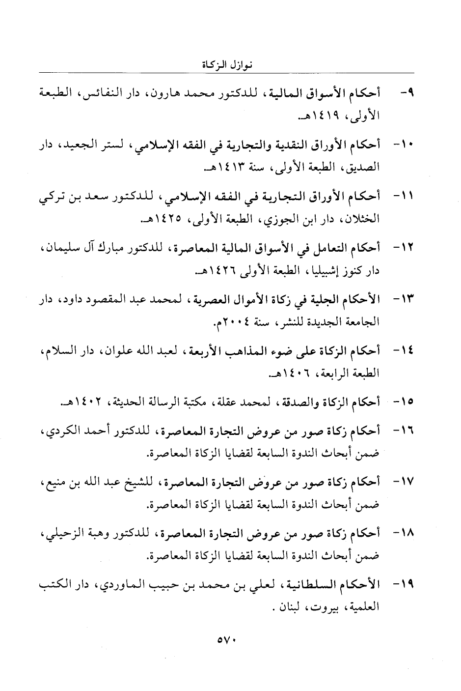 18 - أحكام زكاة صور من عروض التجارة المعاصرة، للدكتور وهبة الزحيلي، ضمن أبحاث الندوة السابعة لقضايا الزكاة المعاصرة.