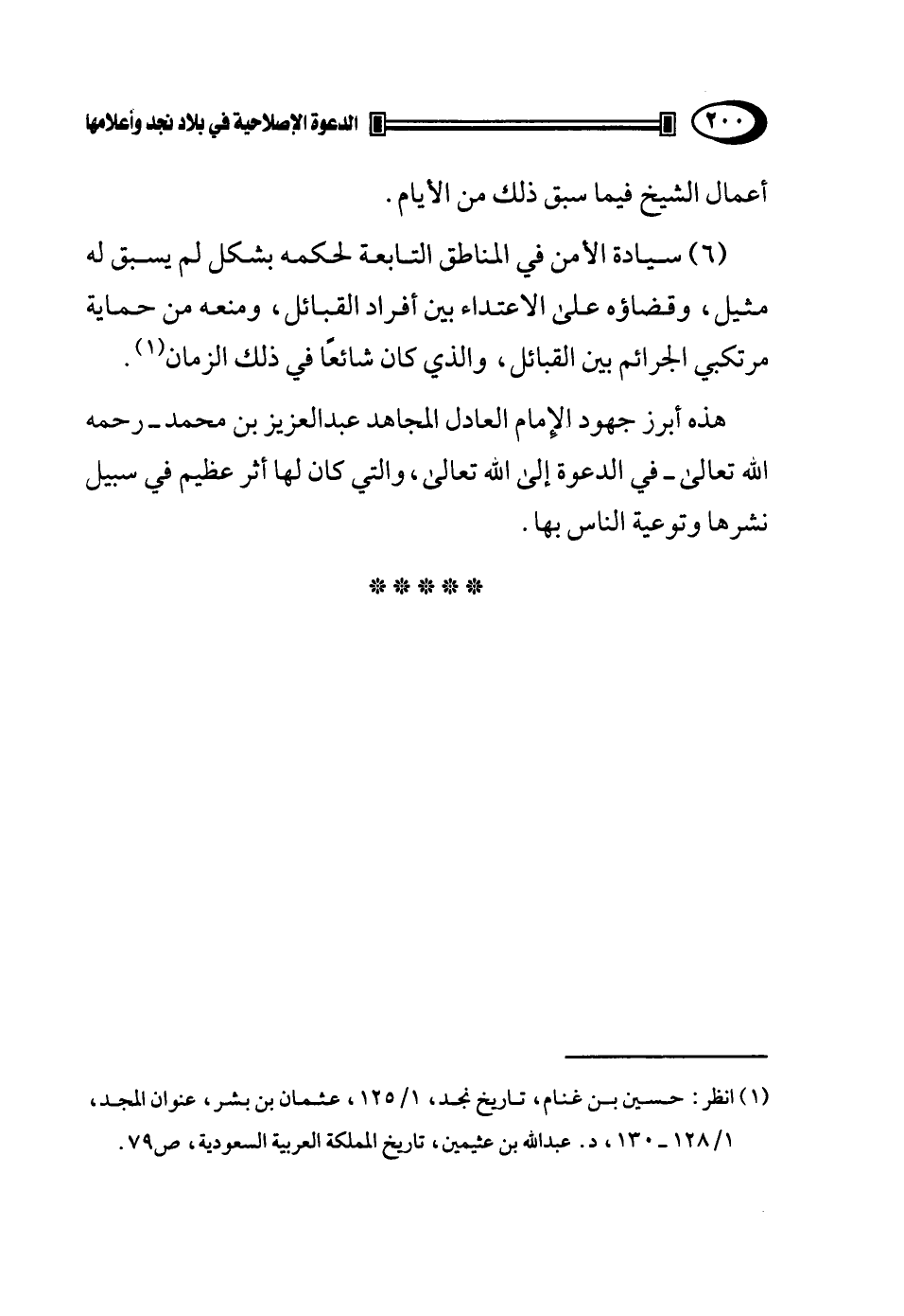 1 انظر: عنوان المجد، لابن بشر، 1/125، تاريخ المملكة العربية السعودية، سيد إبراهيم، ص157، تاريخ المملكة العربية السعودية، د. العثيمين، 1/149، تاريخ البلاد العربية السعودية، د. العجلاني، 3/154، الموسوعة العربية العالمية، 12/261ـ262.