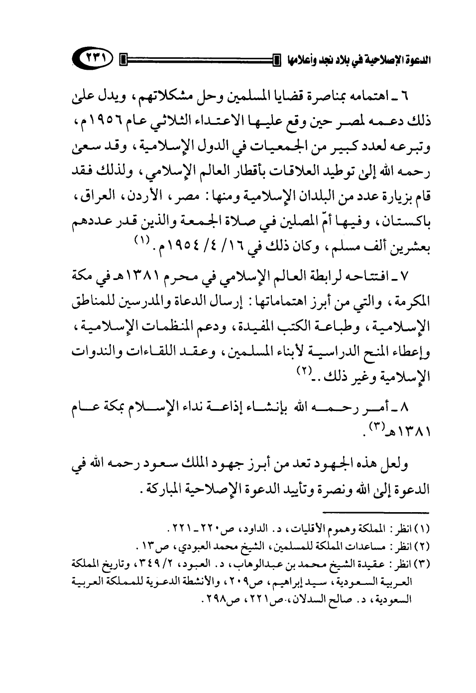 3ـ إعطاؤه للمملكة دورها القيادي بين دول العالم في الدفاع عن المسلمين ونصرتهم، لشعوره بالواجب الإسلامي الملقى على عاتق هذا البلد المقدس، والقيام بكل ما يتطلبه ذلك من الوقوف مع الدول