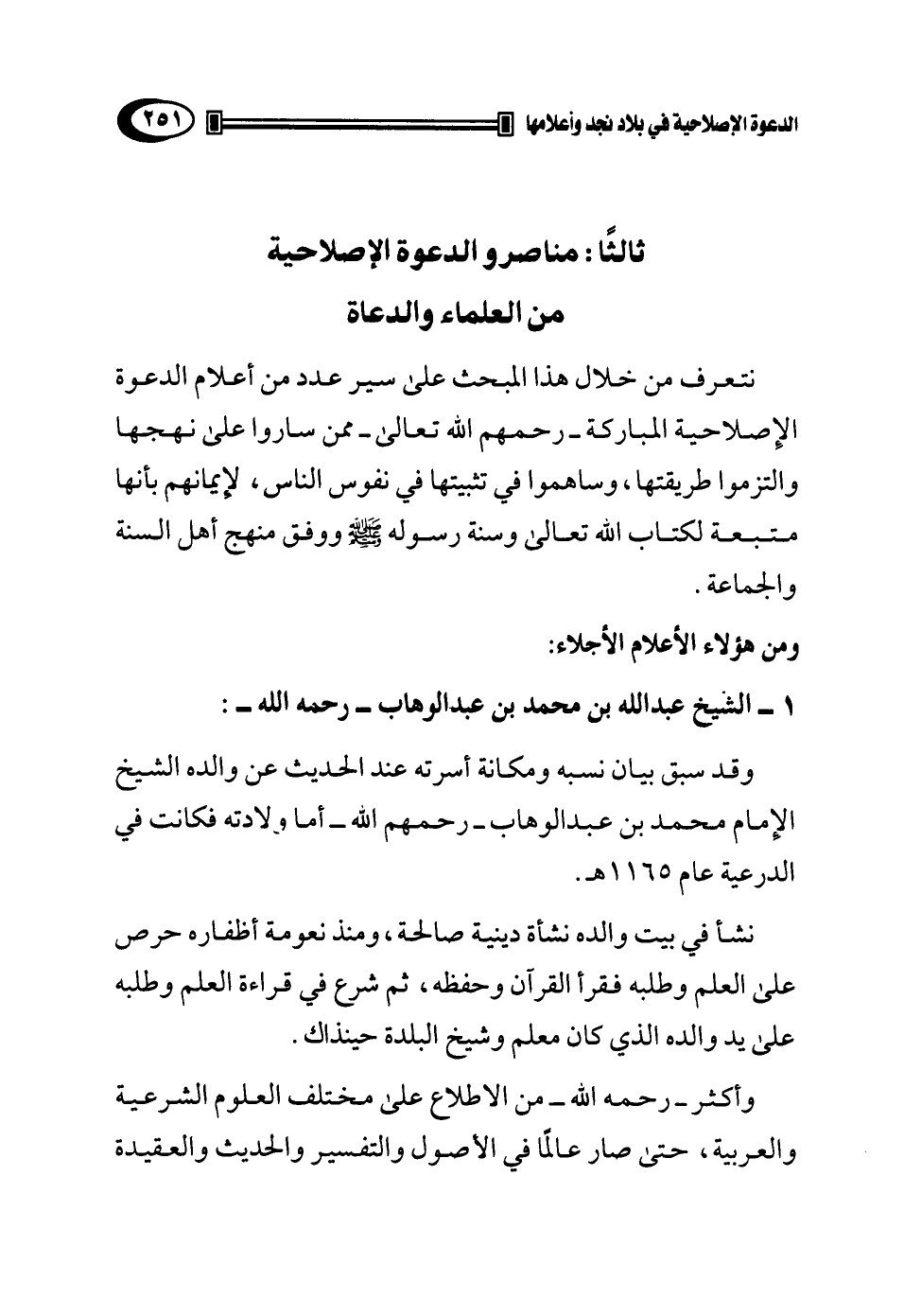 كتاب الدعوة الإصلاحية في بلاد نجد على يد الإمام محمد بن عبد الوهاب وأعلامها من بعده