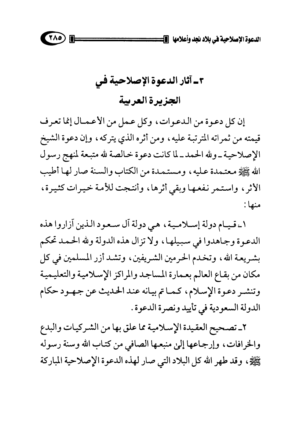 تعد هذه أبرز آثار هذه الدعوة الإصلاحية المباركة في الجزيرة العربية، نسأل الله تعالى لها المزيد.