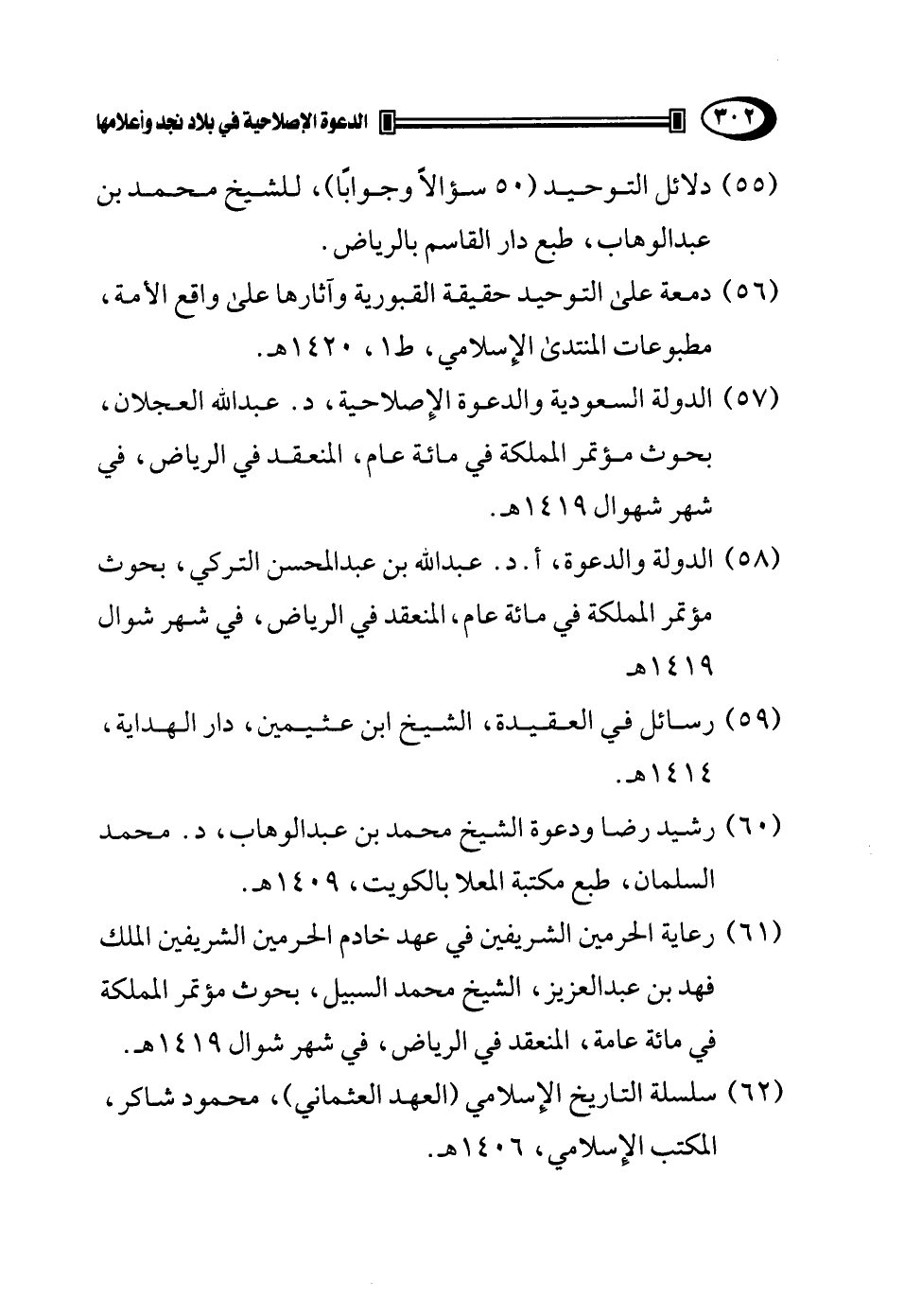 76ـ الشيخ محمد بن عبد الوهاب حياته وفكره، د. عبد الله العثيمين، طبع دار العلوم بالرياض، 1406هـ.