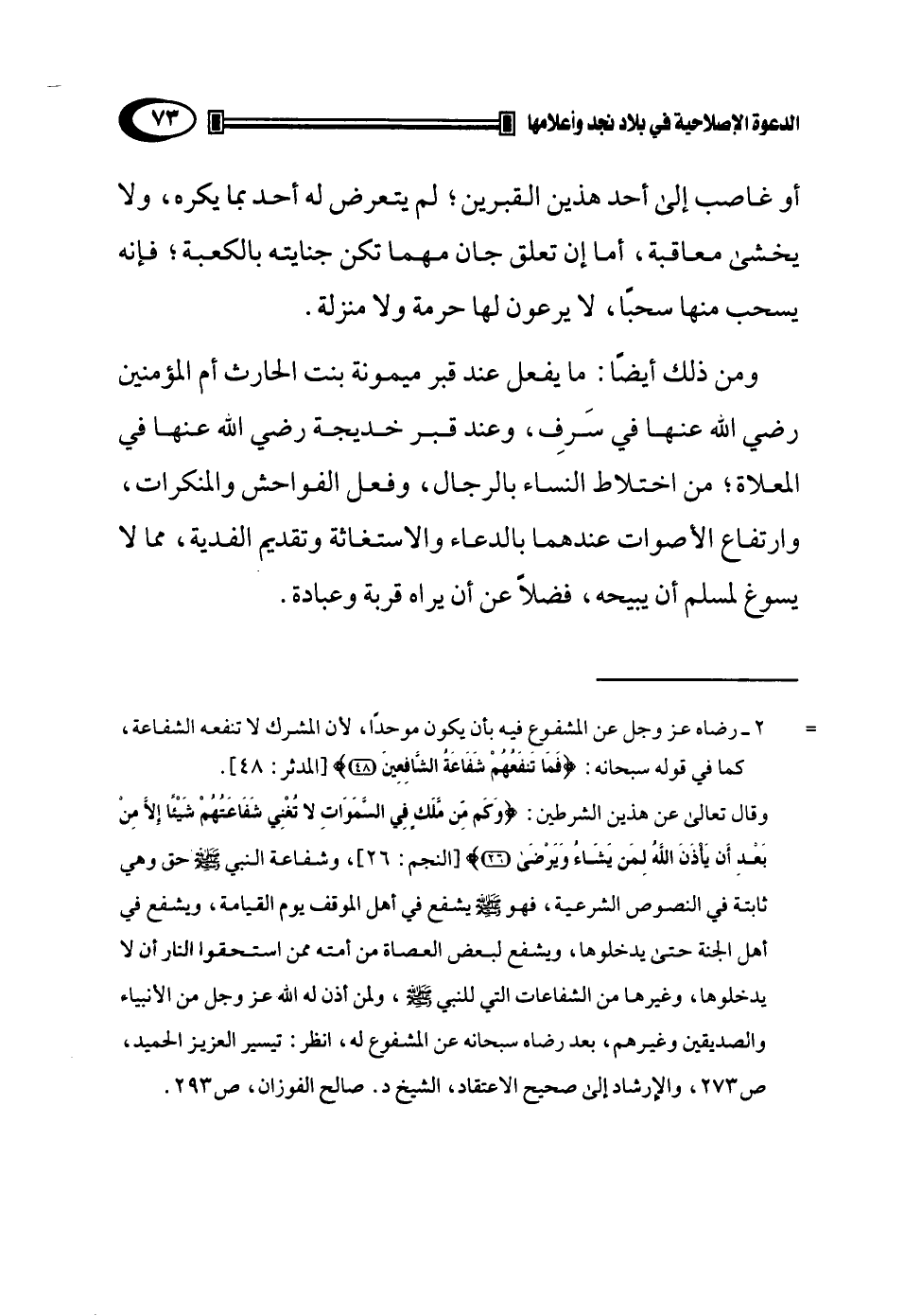 وشيوعه، وقد لعن الرسول صلى الله عليه وسلم فاعله1، وكفى بذلك زجرا ووعيدا، ونهى عما يفعله عنده الجهال وأهل الضلال، وغلظوا في ذلك تغليظا شديدا، ويكل اللسان عن وصف ما يفعل عند قبر حمزة رضي الله عنه، وفي البقيع وقباء، ويعجز القلم عن بيانه.