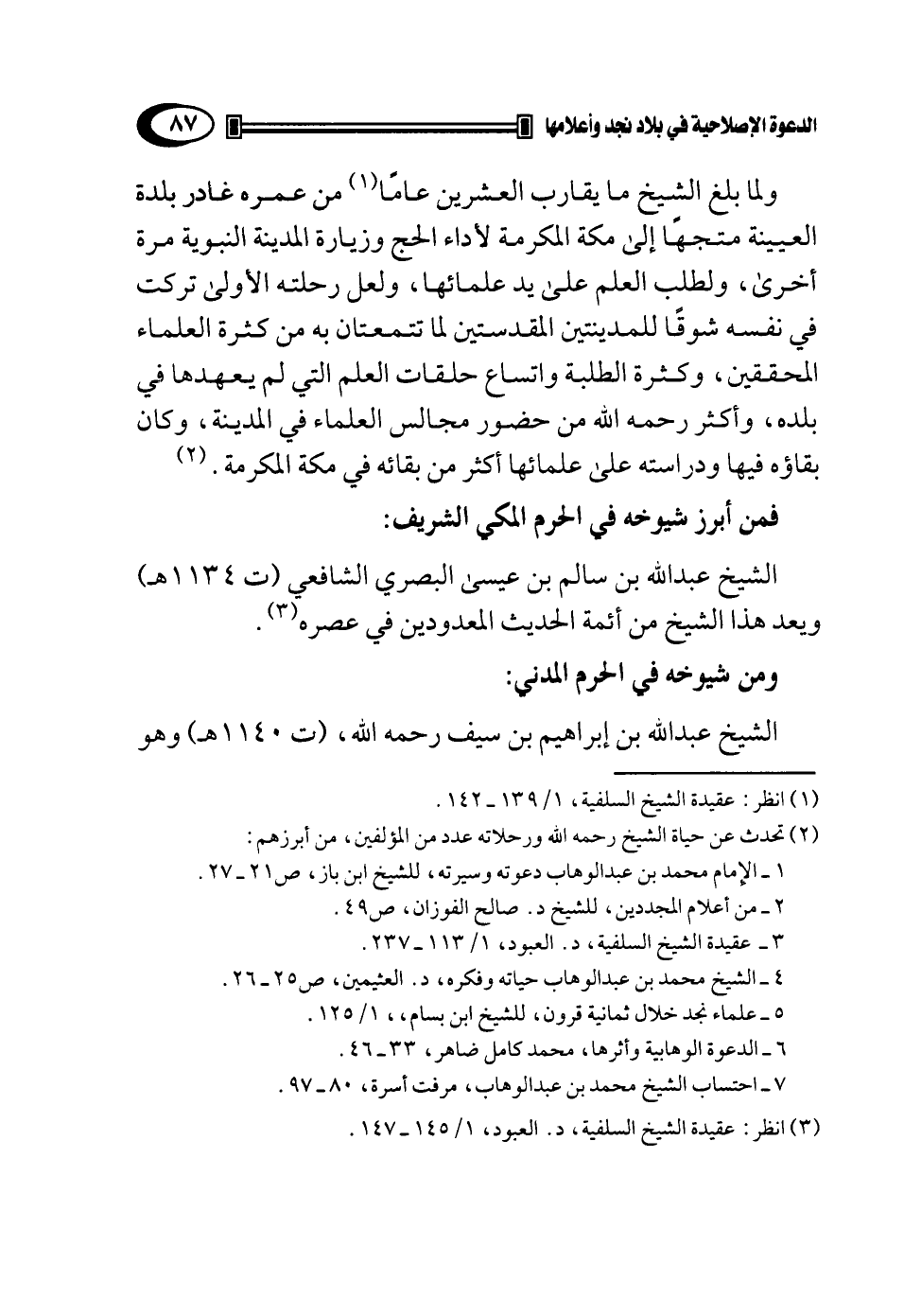 1 انظر: الشيخ محمد بن عبد الوهاب، د. العثيمين، ص35.