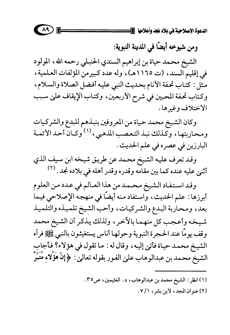 2 انظر هذا الرأي لفضيلة الشيخ عبد العزيز بن باز رحمه الله، في كتاب الإمام محمد بن عبد الوهاب دعوته وسيرته، ص25، وانظر: الخلاف في تاريخ عودته من رحلاته العلمية، الشيخ محمد بن عبد الوهاب، د. العثيمين، ص43ـ44.