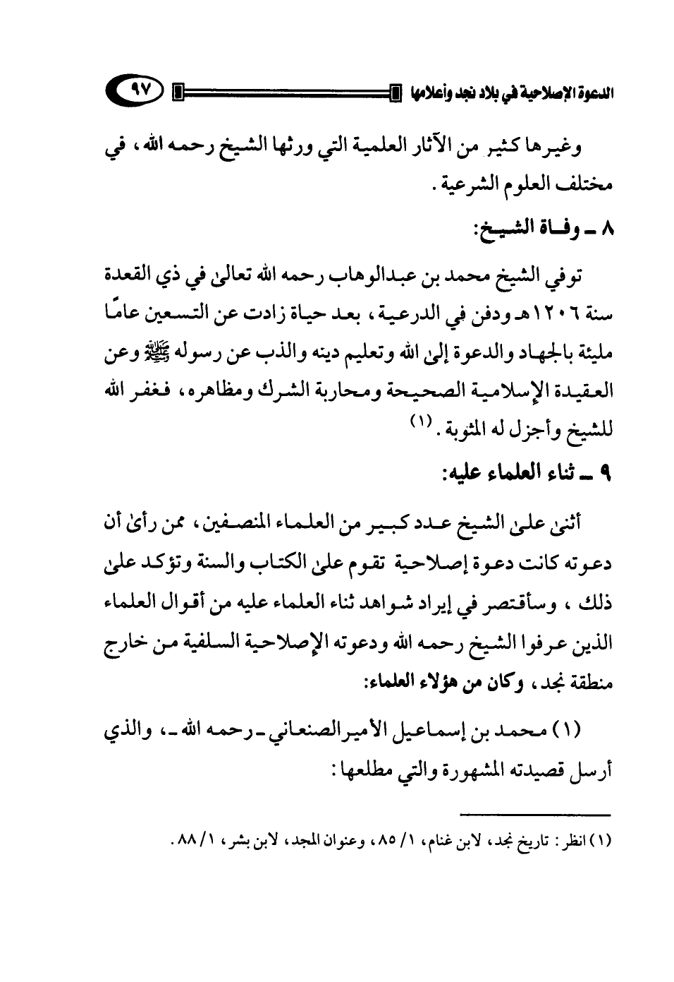 كتاب الدعوة الإصلاحية في بلاد نجد على يد الإمام محمد بن عبد الوهاب وأعلامها من بعده