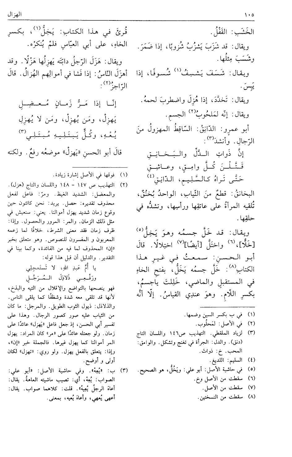 قال أبو الحسن: "يهزل" موضعه رفع. ولكنه