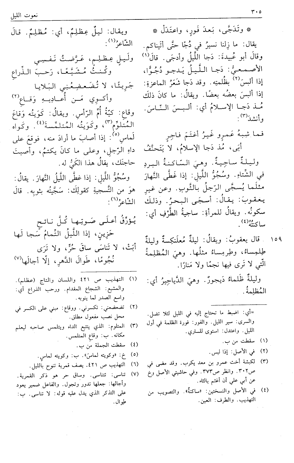 يقال: ما زلنا نسير في دجا حتى أتيناكم. وقال أبو عبيدة: دجا الليل وأدجى. قال الأصمعي: دجا الليل يدجو دجوا، إذا ألبس بظلمته. وقد دجا شعر الماعزة: إذا ألبس بعضه بعضا. ويقال: ما كان ذلك مذ دجا الإسلام أي: ألبس الناس. وأنشد: