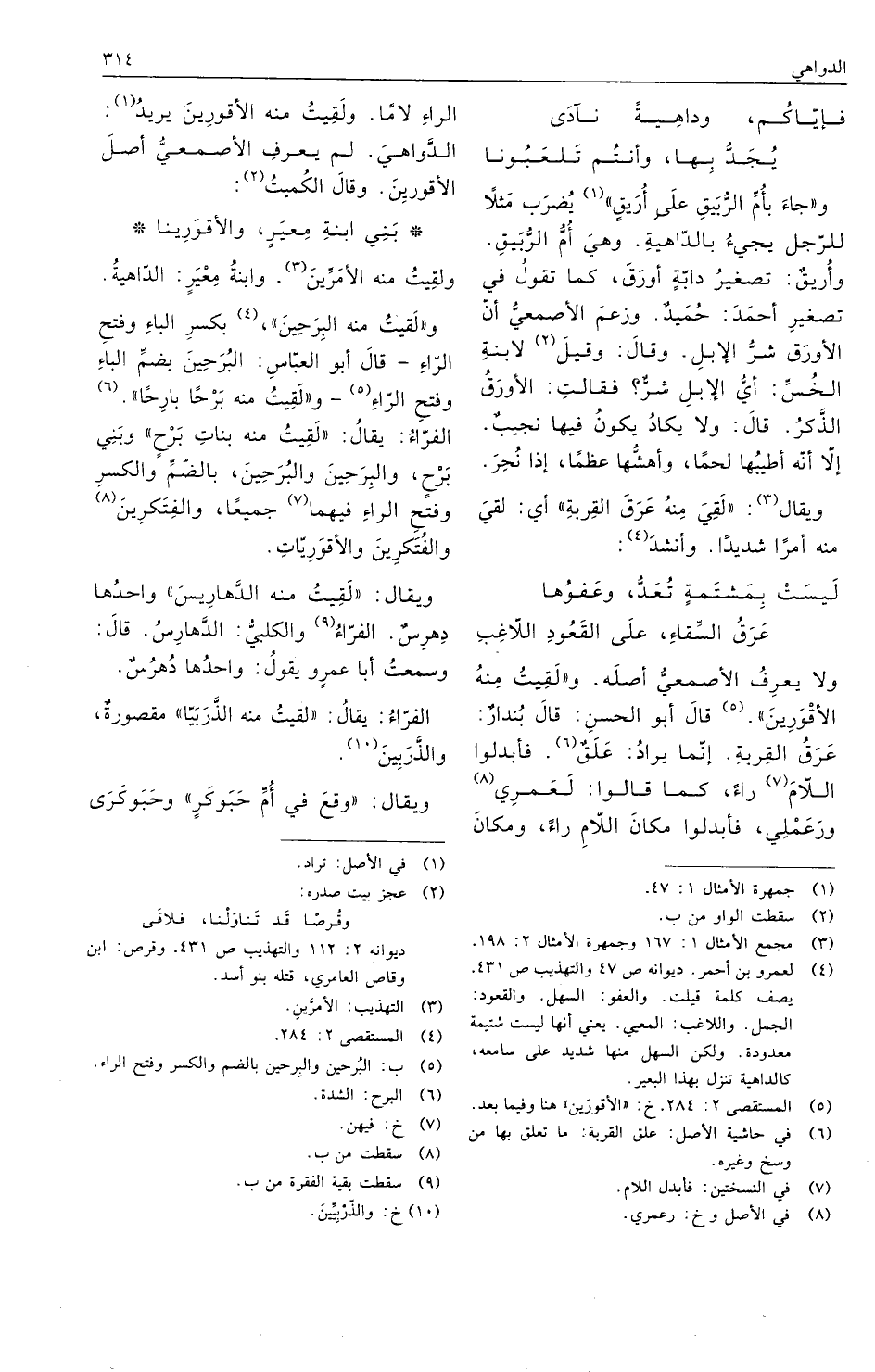 ولا يعرف الأصمعي أصله. و"لقيت منه الأقورين". قال أبو الحسن: قال بندار: عرق القربة. إنما يراد: علق. فأبدلوا اللام راء، كما قالوا: لعمري ورعملي، فأبدلوا مكان اللام راء، ومكان الراء لاما. ولقيت منه الأقورين يريد: الدواهي. لم يعرف الأصمعي أصل الأقورين. وقال الكميت: