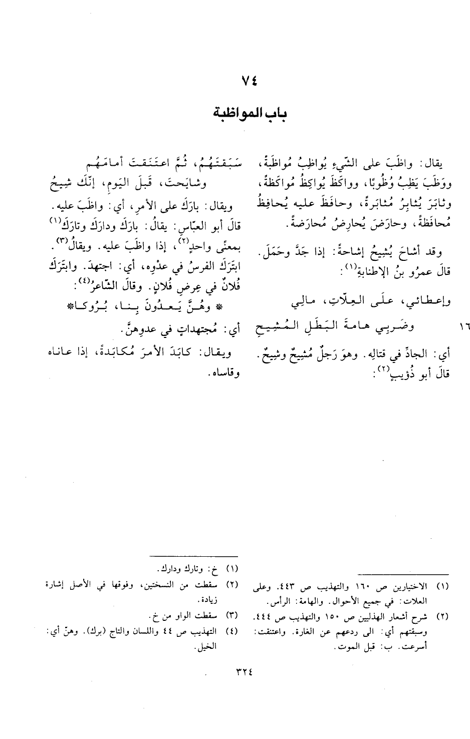 يقال: واظب على الشيء يواظب مواظبة، ووظب يظب وظوبا، وواكظ يواكظ مواكظة، وثابر يثابر مثابرة، وحافظ عليه يحافظ محافظة، وحارض يحارض محارضة.