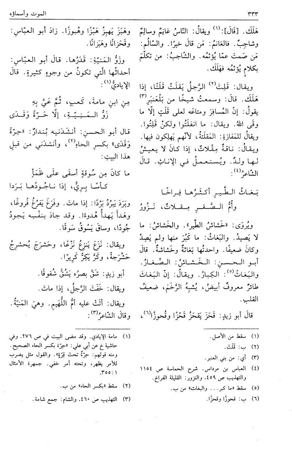 وبرد يبرد بردا: إذا مات. وفرغ يفرغ فروغا، وهدأ يهدأ هدوءا. وقد جاد بنفسه يجود جودا، وساق يسوق سوقا.