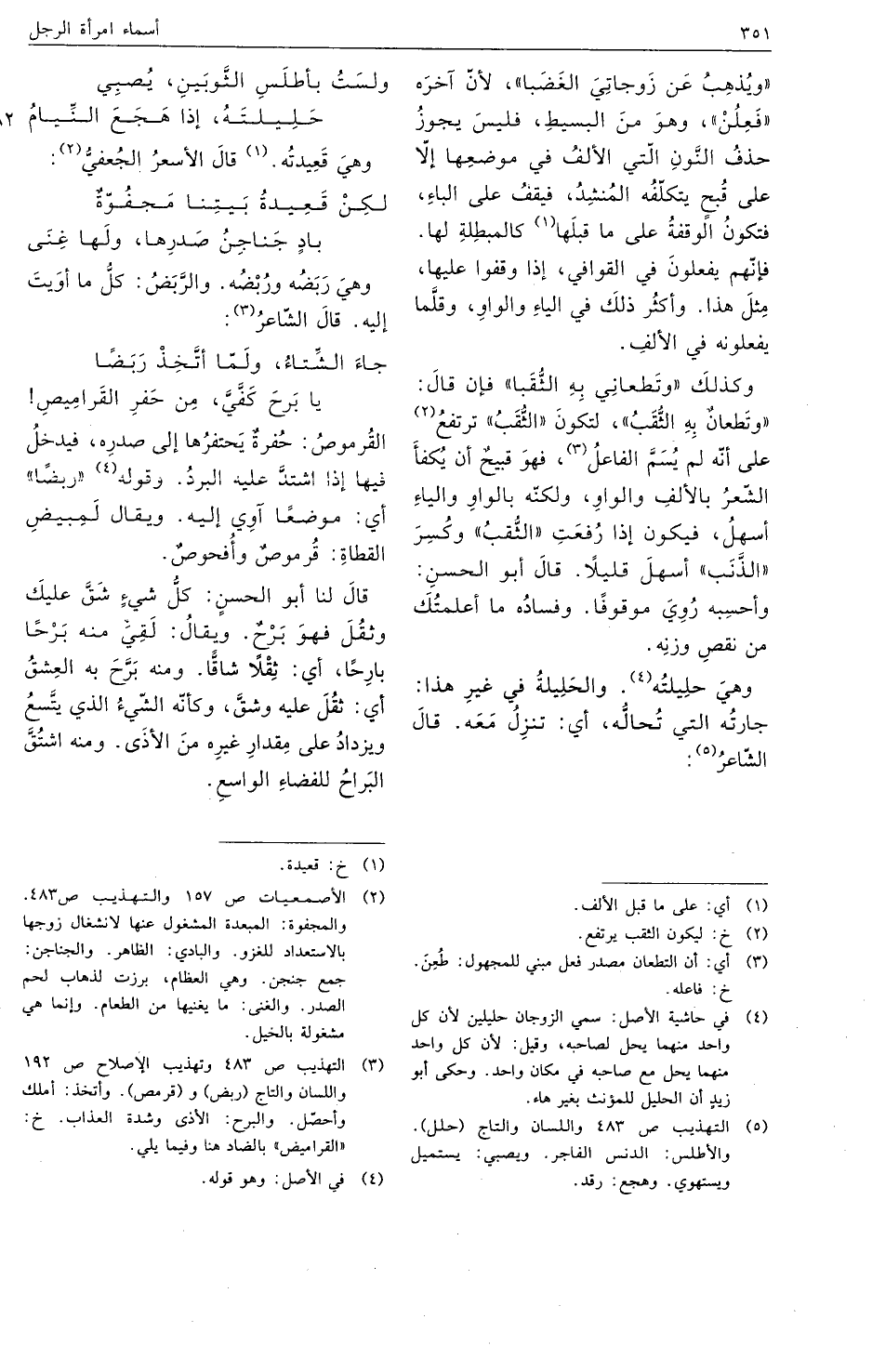"ويذهب عن زوجاتي الغضبا"، لأن آخرخ "فَعِلُنْ"، وهو من البسيط، فليس يجوز حذف النون التي الألف في موضعها إلا على قبح يتكلفه المنشد، فيقف على الباء، فتكون الوقفة على ما قبلها كالمبطلة لها. فإنهم يفعلون في القوافي، إذا وقفوا عليها، مثل هذا. وأكثر ذلك في الياء والواو، وقلما يفعلونه في الألف.