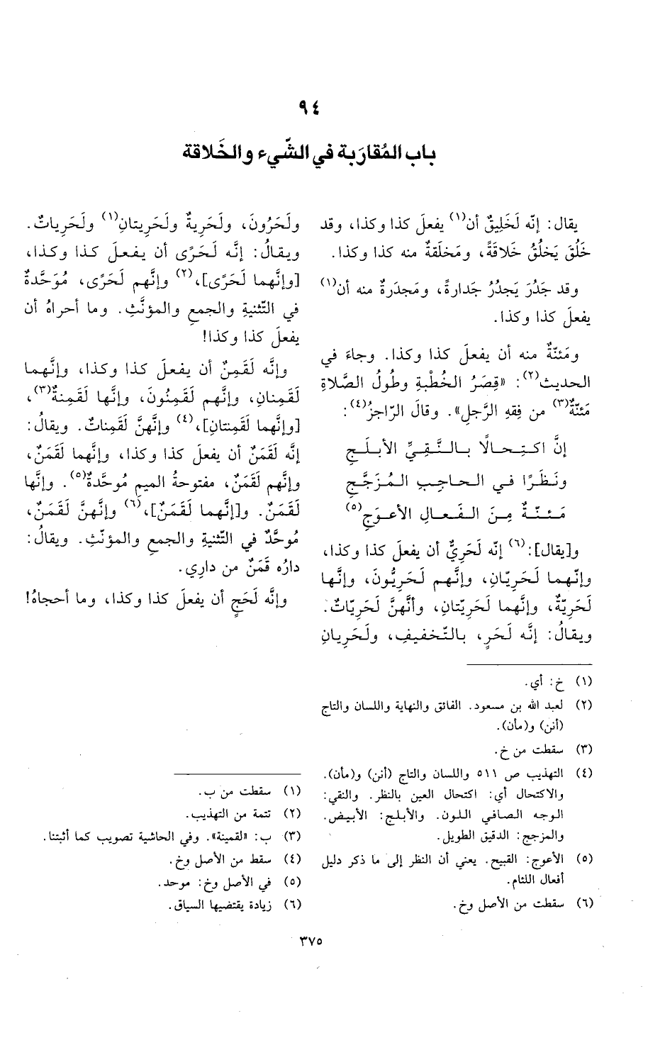 94 - باب المُقارَبة في الشّيء والخَلاقة