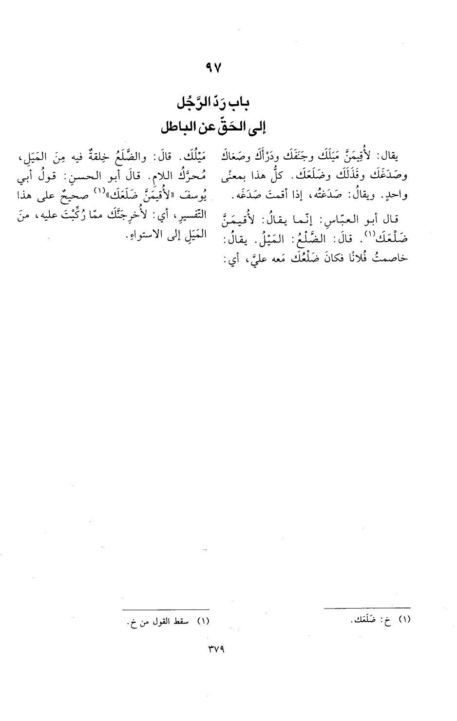 97 - باب رَدّ الرَّجُل إلى الحَقّ عن الباطل