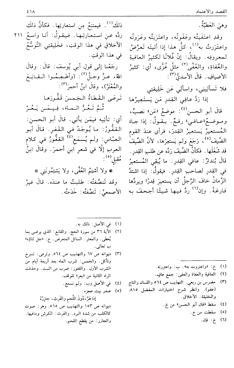 رجعنا إلى قول أبي يوسف: قال: وقال الله عز وجل: {وأطعِمُوا القانِعَ والمُعْتَرَّ}، وقال ابن أحمر: