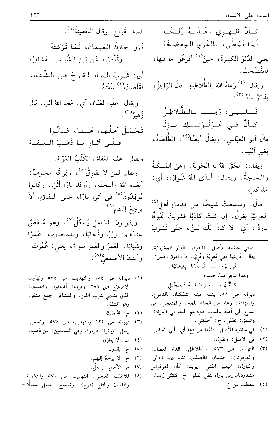 ويقولون للساعل يسعل، وهو مبغض عندهم: وريا وقحابا، وللمحبوب: عمرا وشبابا. العمر والعمر سواء، يعني: عمرت. وأنشد الأصمعي:
