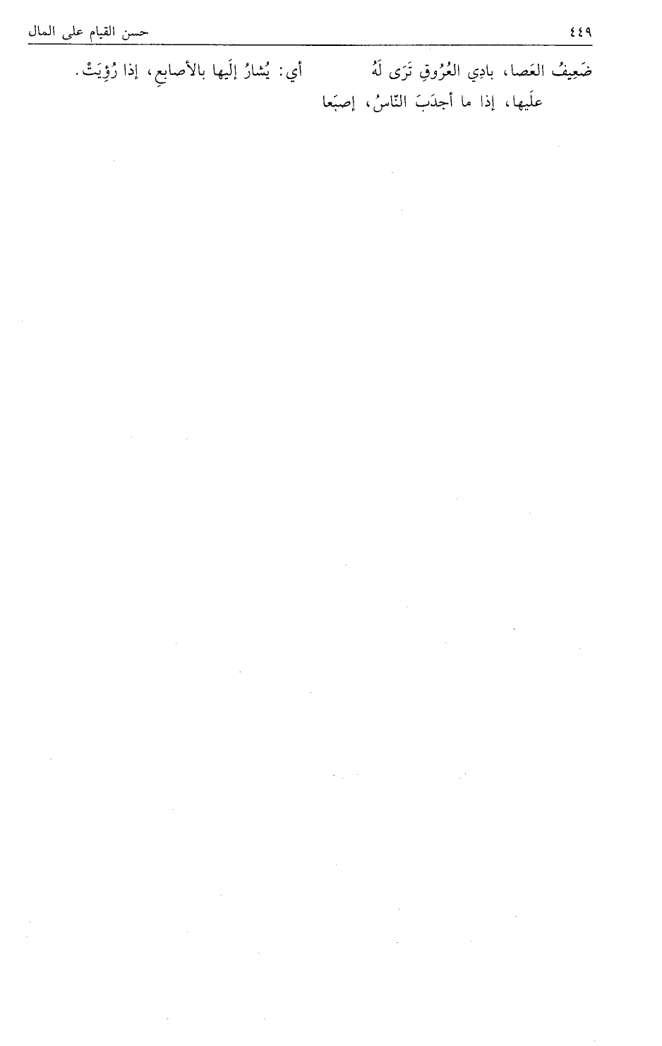 ضَعِيفُ العَصا، بادِي العُرُوقِ تَرَى لَهُ علَيها، إذا ما أجدَبَ النّاسُ، إصبَعا