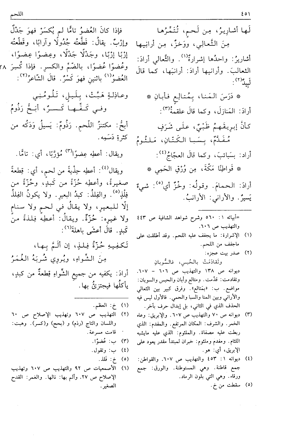 ويقال: أعطه حذية من لحم، أي: قطعة صغيرة، وأعطه حزة من كبد، وحزة من فلذ. والفلذ: كبد البعير. ولا يكون الفلذ إلا للبعير، ولا يقال في لحم ولا سنام ولا غيره: حزة. ويقال: أعطه فلذة من كبد. قال أعشى باهلة: