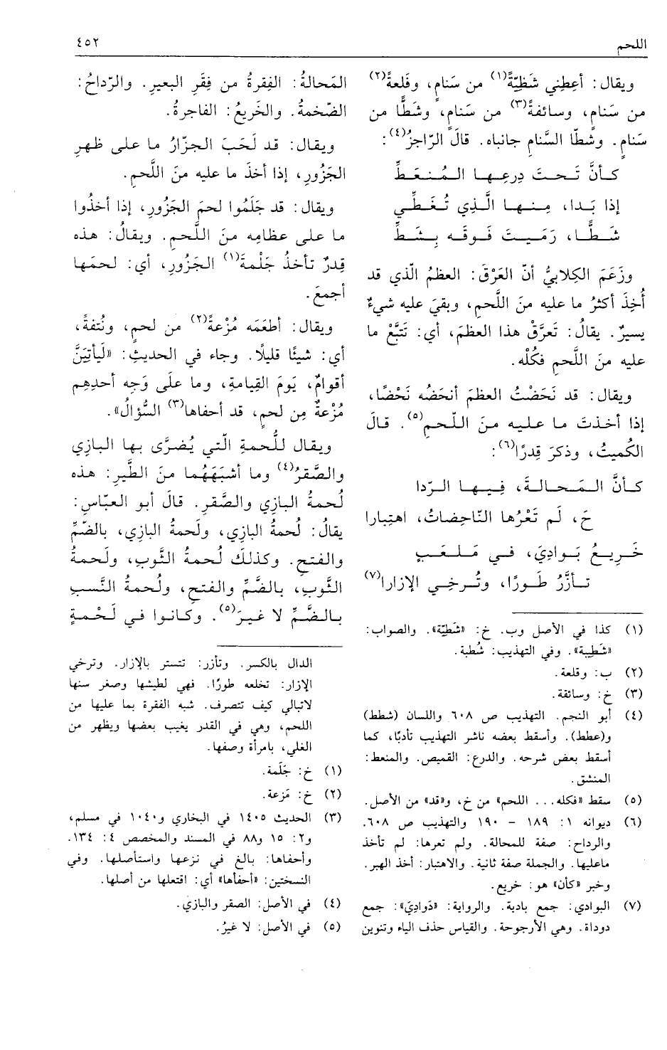 ويقال للحمة التي يضري بها البازي والصقر وما أشبههما من الطير: هذه لحمة البازي والصقر. قال أبو العباس: يقال: لحمة البازي، ولحمة البازي، بالضم والفتح. وكذلك لحمة الثوب، ولحمة الثوب، بالضم والفتح، ولحمة النسب بالضم لا غير. وكانوا في لحمة