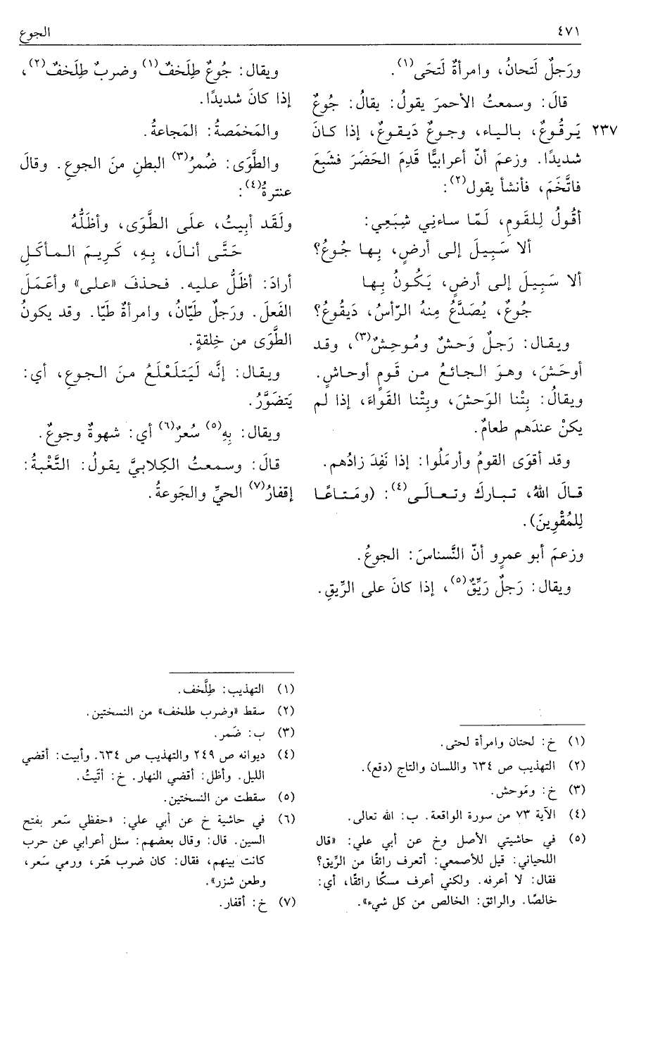 قال: وسمعت الأحمر يقول: يقال: جوع يرقوع، بالياء، وجوع ديقوع، إذا كان شديدا. وزعم أن أعرابيا قدم الحضر فشبع فاتخم، فأنشأ يقول: