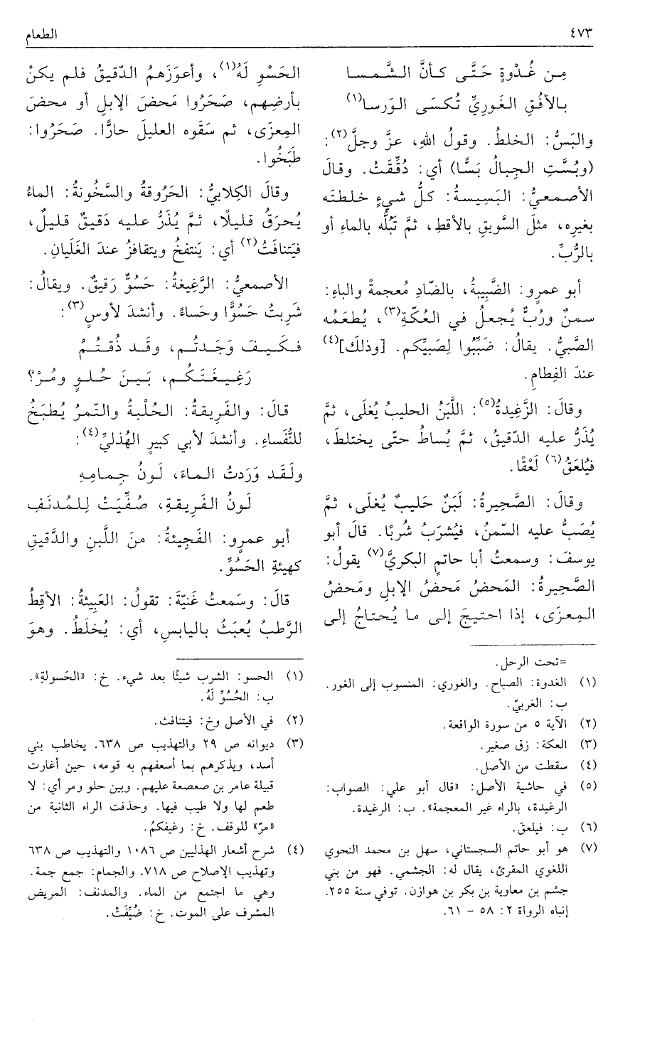 وقال: الصحيرة: لبن حليب يغلى، ثم يصب عليه السمن، فيشرب شربا. قال أبو يوسف: وسمعت أبا حاتم البكري يقول: الصحيرة: المحض محض الإبل ومحض المعزى، إذا احتيج إلى ما يحتاج إلى الحسو له، واعوزهم الدقيق فلم يكن بأرضهم، صحروا محض الإبل أو محض المعزى، ثم سقوه العليل حارا. صحروا: طبخوا.