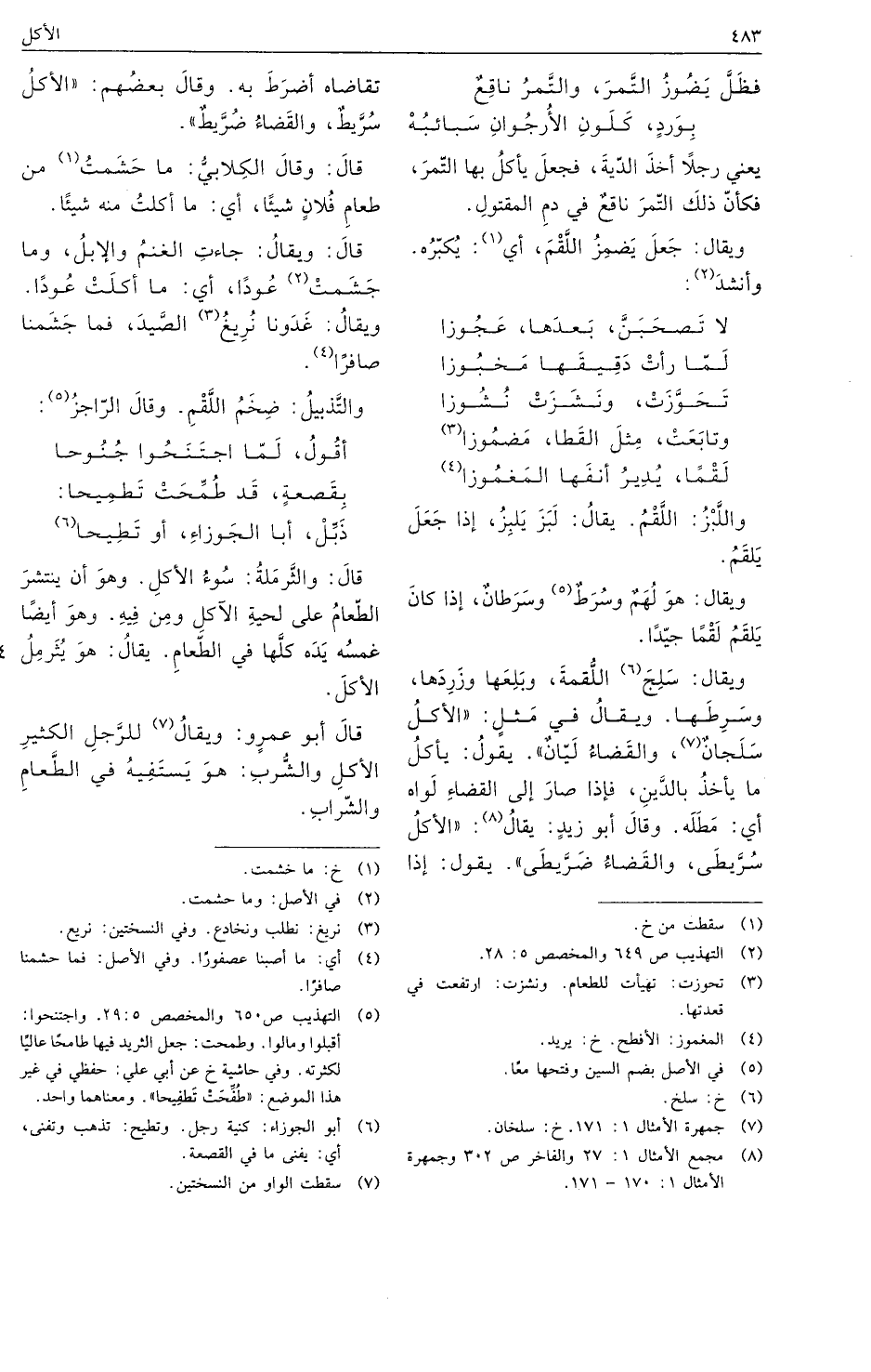 ويقال: سلج اللقمة، وبلعها وزردها، وسرطها. ويقال في مثل: "الأكل سلجان، والقضاء ليان". يقول: يأكل ما يأخذ بالدين، فإذا صار إلى القضاء لواه أي: مطله. وقال أبو زيد: يقال: "الأكل سريطى، والقضاء ضريطى". يقول: إذا تقاضاه أضرط به. وقال بعضهم: "الأكل سريط، والقضاة ضريط".