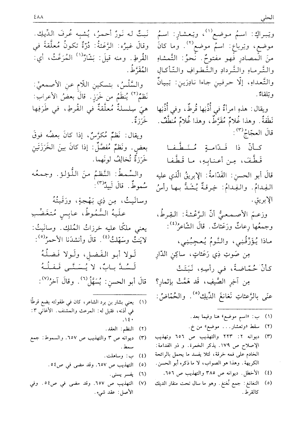 عنى بالرعثات نغانغ الديك. والحماض: نبت له نور أحمر، يشبه عرف الديك. وقال غيره: الرعثة: درة تكون معلقة في القرط. ومنه قيل: بشار المرعث، أي: المقرط.