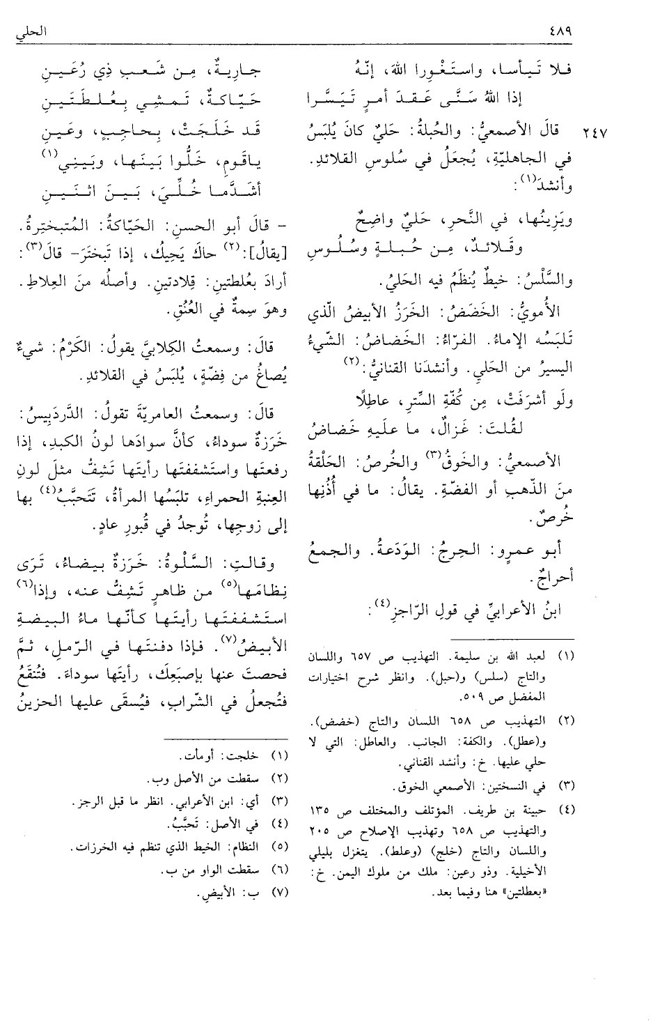 ويَزِينُها، في النَّحرِ، حَليٌ واضِحٌ وقَلائدٌ، مِن حُبلةٍ وسُلُوسِ