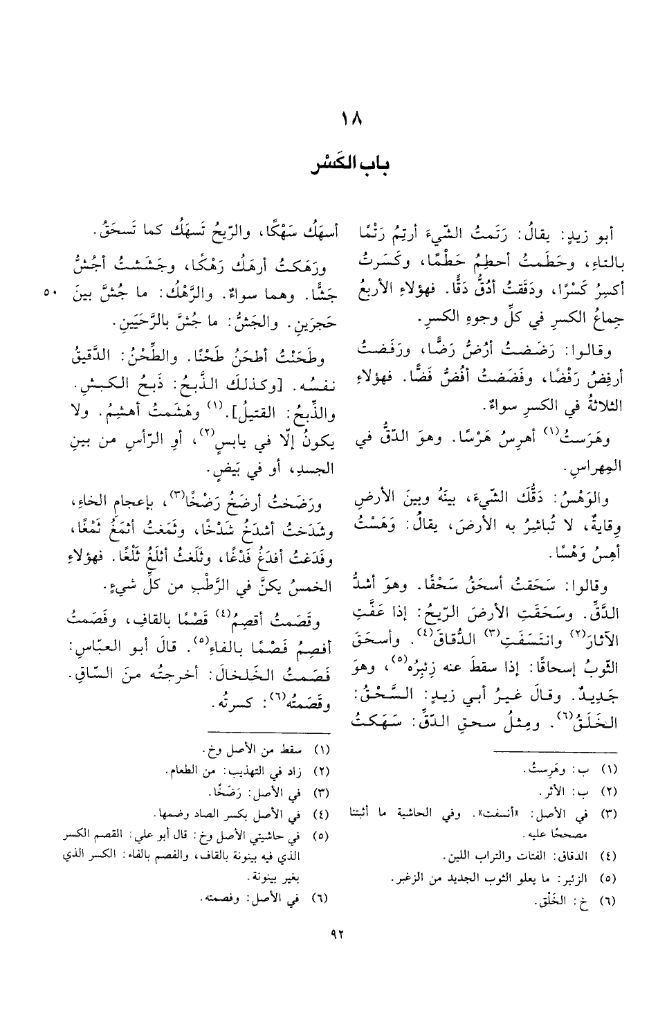 ورضخت أرضخ رضخا، بإعجام الخاء، وشدخت أشدخ شدخا، وثمغت أثمغ ثمغا، وفدغت أفدغ فدغا، وثلغت أثلغ ثلغا. فهؤلاء الخمس يكن في الرطب من كل شيء.
