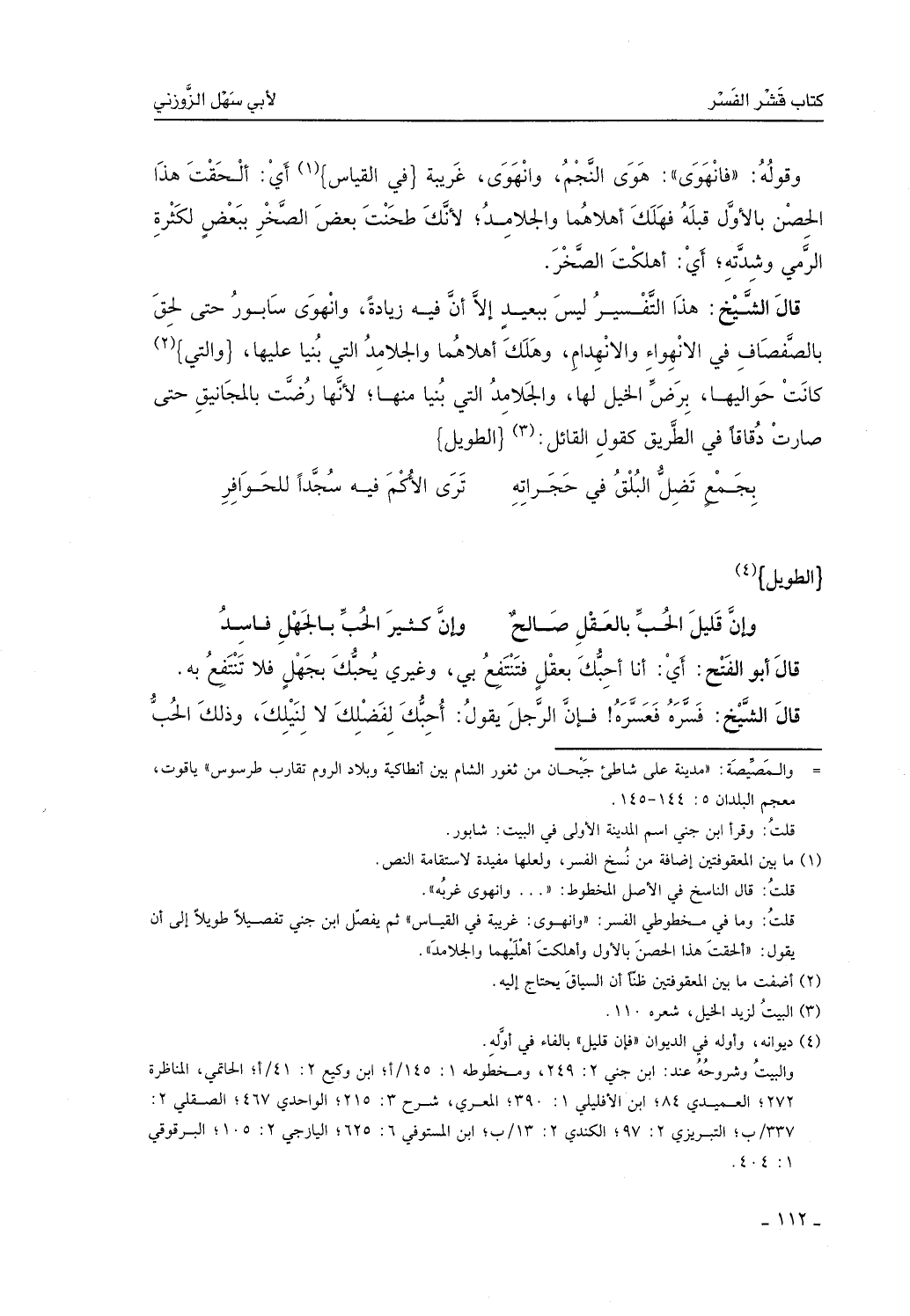 قال الشيخ: هذا التفسير ليس ببعيد، إلا أن فيه زيادة، وانهوى سابور حتى لحق بالصفصاف من الانهواء والانهدام، وهلك أهلاهما والجلامد التي بُنيا عليها، وكانت حواليها برضِّ الخيل لها، والجلامد التي بُنيا منها، لأنها رُضت بالمجانيق حتى صارت رقاقاً في الطريق كقول القائل: