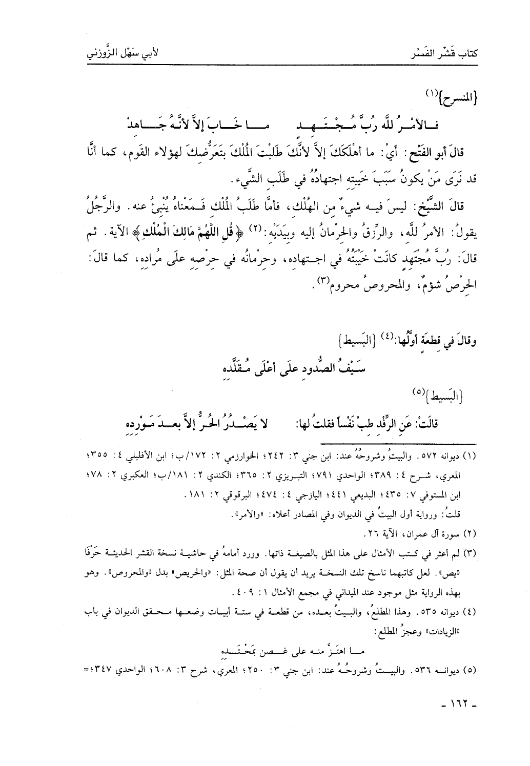 قال الشيخ: ليس في شيء من الهُلك، فأما طلب المُلك فمعناه ينبئ عنه، والرجل يقول: الأمر لله والرزق والحرمان إليه وبيديه، (قل اللَّهم مالكُ المُلكِ) الآية. ثم قال: رب مجتهد كانت خيبته في اجتهاده وحرمانه في حرصه على مراده، كما قال: الحرصُ شُؤمٌ والمحروصُ محرومٌ.